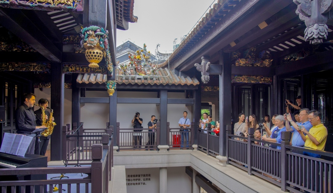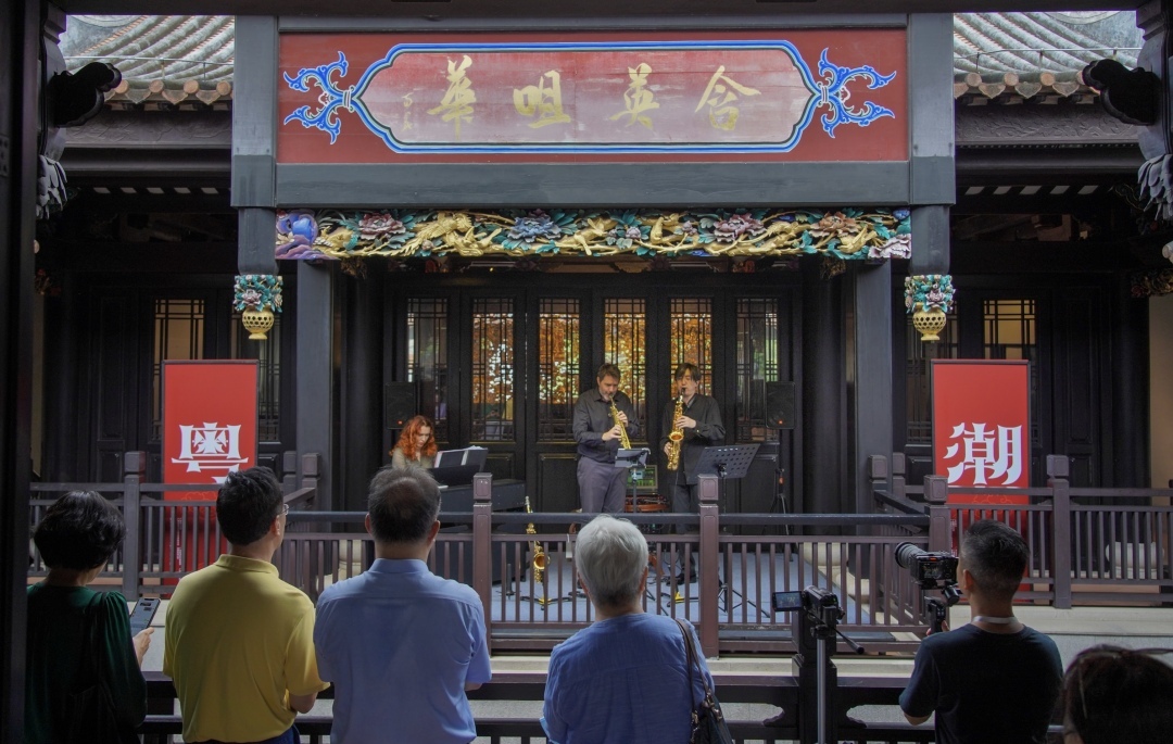 11月16日,粤潮文化周系列活动之“粤风西韵:萨克斯风邂逅粤剧”在位于广州荔湾的粤剧艺术博物馆以及位于天河的珠江公园湾区书屋举行,为观众呈现了一场别具一格的音乐体验。