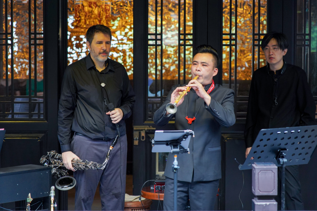 随后,他以萨克斯的柔美音色演绎粤剧经典段落,呈现中西文化的交融与对话。演出的最后,艺术家们以米约的《丑角》收尾,用轻松欢快的旋律为整场演出画上愉悦的句点。