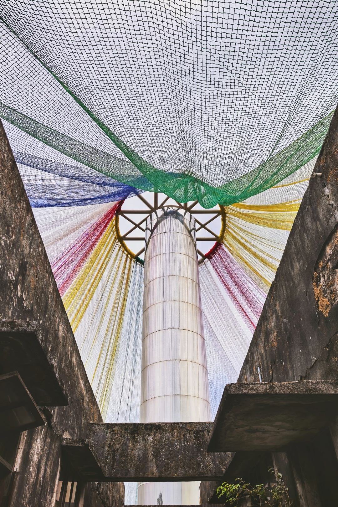 本届在西樵镇的艺术区域主要包括西樵山、听音湖(含南海丝厂)、平沙岛、太平墟、儒溪村、渔耕粤韵六大艺术片区,将展出超过60个艺术项目。在西樵山天湖边的隐秘林间,艺术家朱哲琴的作品《听山》,把2023-2024两年间在山野中采集的鸟语、溪流、瀑布、蛙鸣、钟鼓的声音素材运用40Hz-12000hz之间的不同频率进行编辑制作,通过自由散点的音源排布,创作一个专属于聆听的开放性“废墟”。艺术家尝试通过放大“听”这一弱势感官,去重新认识事物,寻找声与波的能量。如果您选择坐缆车上山,可以留意“土地喵”,这是艺术家文那的作品,车厢号码对应不同猫猫签,只有抵达“土地喵”才能看到解签签文……