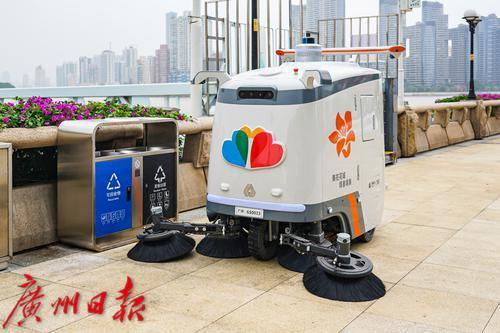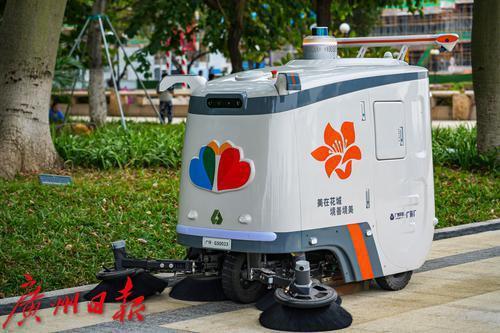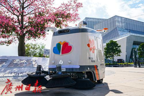 不仅是智慧井盖,在艺术中心旁边的绿化提升广场和花地河畔,还能看到两位特殊的“城市美容师”在岸边、河面各司其职。它们分别是无人驾驶清扫车GS1和无人驾驶清洁船。