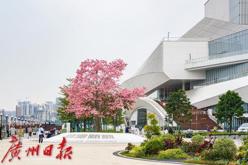 白鹅潭,作为珠江风光最美的区域之一,深受广州市民特别是老城区居民的喜爱。特别是集广东美术馆、广东省非物质文化遗产馆、广东文学馆于一体的白鹅潭大湾区艺术中心(简称艺术中心)建成之后,备受关注,自从今年开放以来,这里已经成为广大市民游客青睐的热门打卡地。艺术中心处于珠江岸与花地河之间,在艺术中心周边,道路宽敞整洁,绿树红花相映成趣,江风拂面,河水漾漾,不少市民在此散步、赏景,十分惬意。