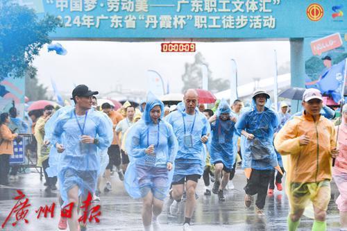 冒雨徒步职工们热情不减,活力满满。