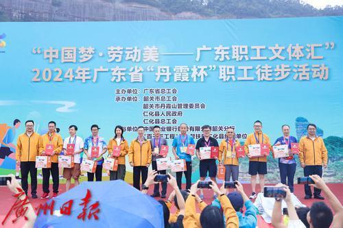 11月15日上午,“中国梦·劳动美——广东职工文体汇”2024年广东省“丹霞杯”职工徒步活动在丹霞山生态广场举行,吸引了全省19个地市1000余名职工参加。徒步过程中尽管下着小雨,参赛者却热情不减,大家穿梭于风景秀丽的丹霞山风景名胜区,体验丹山碧水的魅力,尽情感受美丽的生态画卷。