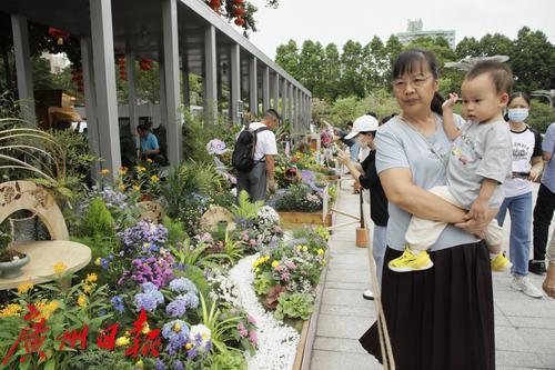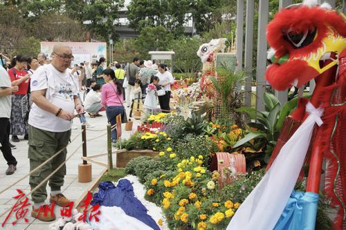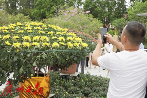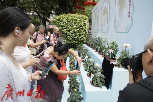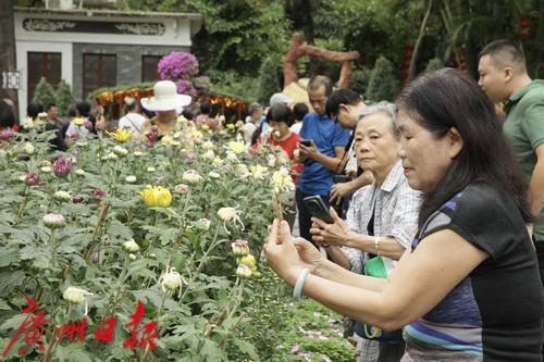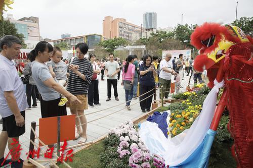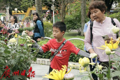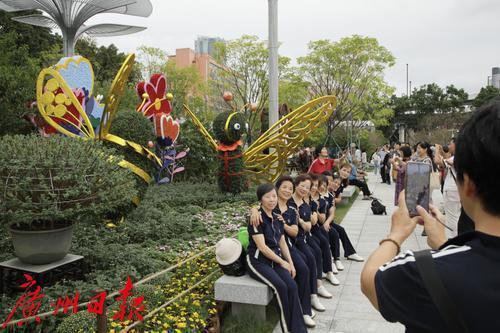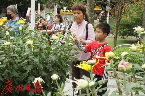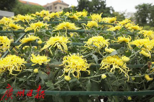 广州高校的42组菊花艺术园圃内容丰富多彩,吸引市民和游客观赏。