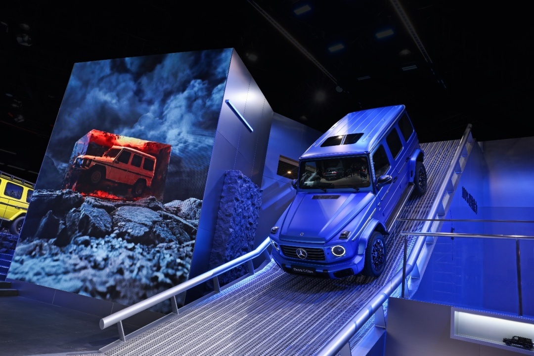 今年恰逢G级越野车诞生45周年,此次广州车展上,全新梅赛德斯-奔驰纯电G级越野车正式上市。全新纯电G级越野车承袭家族经典“越野三件套”,提供电动虚拟差速锁、电动低速越野挡功能和非承载式车身。对于一台燃油车来讲,变速箱是“必需品”;但对于一台电动车来讲,变速箱是“奢侈品”。全新纯电G级越野车搭载4台可独立控制的轮边电机和4台电动两挡变速箱,实现了整车432千瓦和1,164牛·米澎湃动能;在低速越野挡位,可借助2:1的变速箱齿比将总扭矩再放大2倍,赋予车辆挑战极限的更多可能。