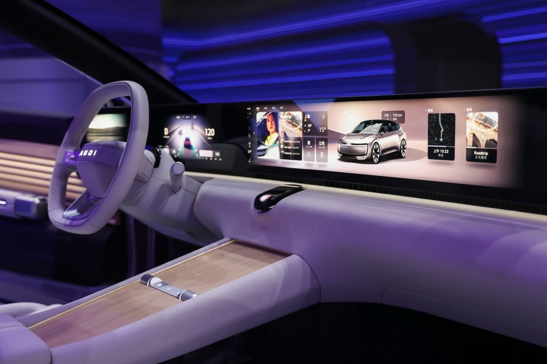 AUDI E概念车的设计团队非常大胆创新,其外观设计以前所未有的方式,兼顾极简主义的设计风格和极致的功能性。AUDI 环形灯面不仅用于照明,还是对奥迪标志性进气格栅的全新诠释。在内饰方面,以驾乘人员为核心的车内设计重新定义了舒适与创新,从高端材料到木制与柔软表面的简洁线条,皆展现出奥迪对细节的执着追求。曲面显示屏为乘驾人员提供了更直观、易用的信息体验。
