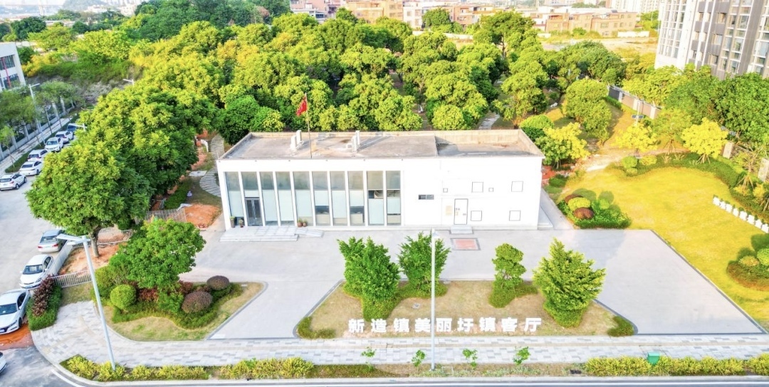 古树名木是一座城市、一个地区历史的见证。新造镇深挖地域特色,秉持“绿水青山就是金山银山”的发展理念,精心打造了这座占地面积5200平方米的古树公园。公园内种植了52棵超120岁树龄的古树,它们见证了新造镇的历史变迁,如今依旧生机勃勃、枝繁叶茂。圩镇客厅坐落在古树公园旁,从客厅内透过大面积的落地玻璃窗望去,仿佛置身于自然画卷之中。