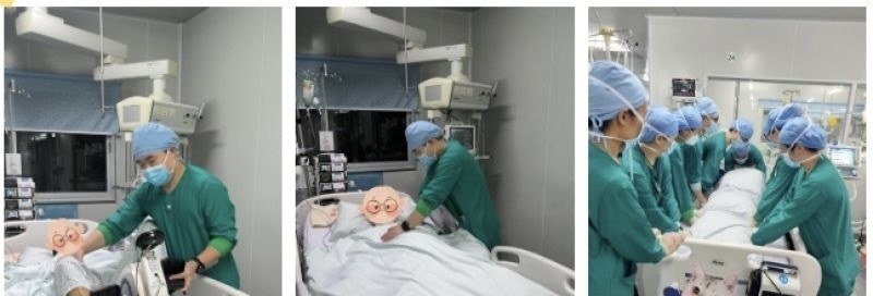 广医附属番禺中心医院重症医学科医护团队为患者进行俯卧位通气、床边心肺功能康复锻炼
