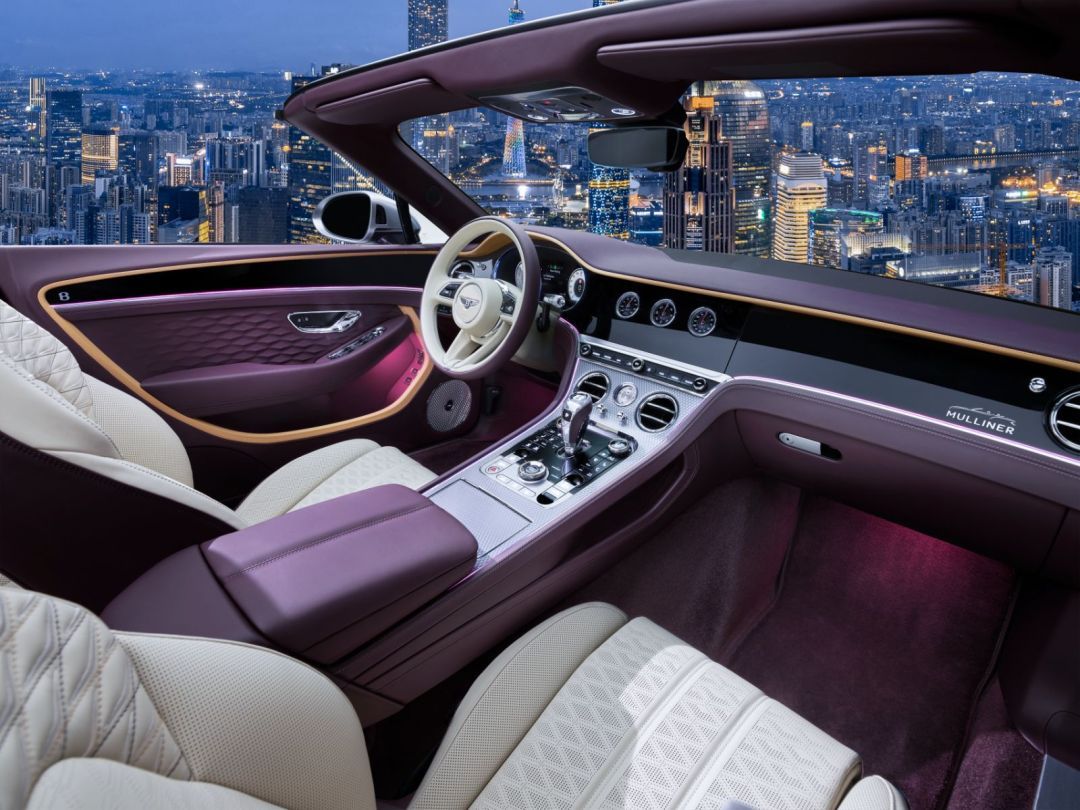 三款新MULLINER版车型可从多达101种漆色范围或者专属定制的漆色中,选择不同颜色组合。内饰提供15种主皮革色、11种辅皮革色和6种强调色,同时MULLINER部门还提供了定制皮革色。如此次亮相2024广州国际车展的新欧陆GT MULLINER版车型外观采用铂彩金漆面,内饰采用米灰搭配深李紫,其他两款都有独特配色。三款新车均配备高亮碳纤维面板,这来自宾利品牌独到的定制工艺。