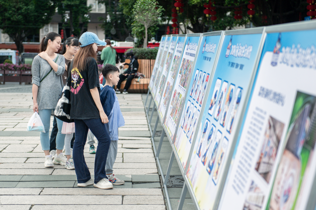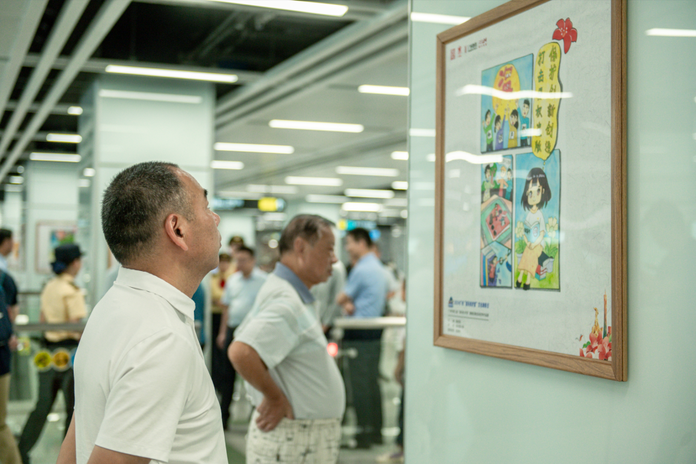 记者走访看到,在陈家祠地铁站的“羊角影像馆”,专题展出了第三届“清风侠·护苗”漫画征集活动的优秀作品。据了解,这些作品是从超过1.2万幅的学生作品中精心挑选出来的,涵盖了传统漫画、立体漫画、连环漫画以及数字绘画等多种形式,不仅展现了学生们对美好生活的向往和对社会正向价值的追求,更传达了读好书、上好网、拒绝有害内容的理念。