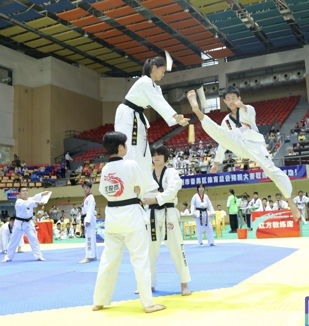 番禺区跆拳道协会会长张俊武致辞指出,此次比赛是为推动跆拳道发展和爱好者交流,希望借此让更多人感受跆拳道魅力,促进全民健身。裁判员代表和运动员代表彭嘉怡、冼尚锐宣誓后,番禺区跆拳道协会表演团的《跆起未来》节目活力十足。随后,比赛在番禺区体育总会相关领导的宣布下开始。