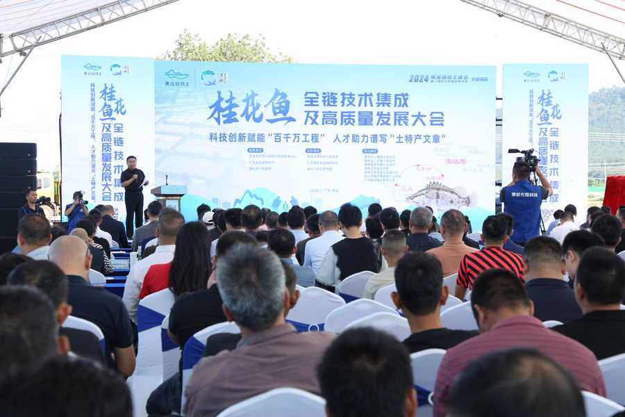 11月18日,2024粤港澳院士峰会·第二届“北江职业创新大会”分会场活动——桂花鱼全链技术集成及高质量发展大会在广东省清远市清新区山塘镇召开。