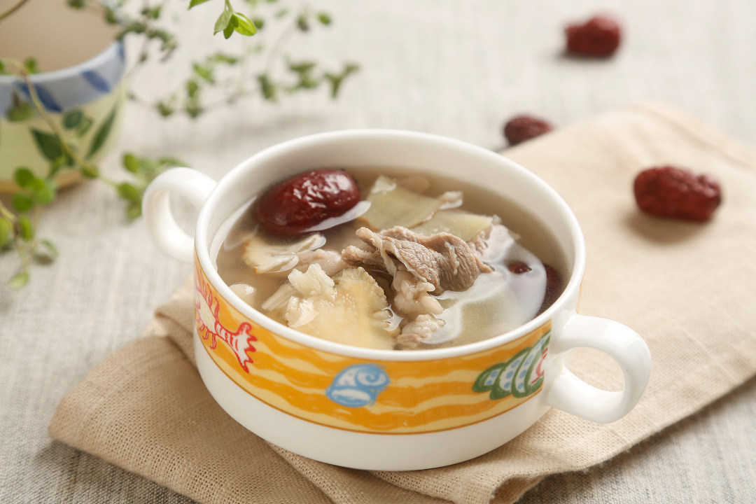 材料:当归15克,生姜10克,茯苓10克,羊肉500克,枸杞10克,食盐适量。