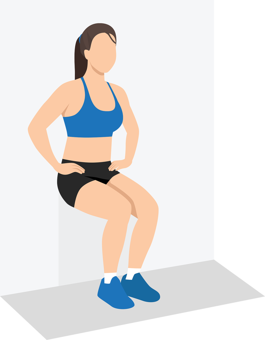 步骤:背靠墙站立,双脚与肩同宽,向前迈出约30厘米。
