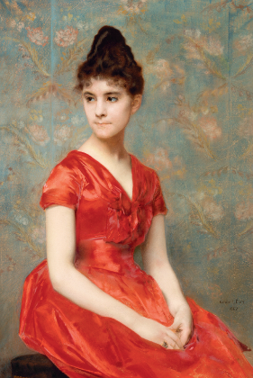 茜红是人类制造的第一种化学红色颜料,它是如此明亮,让人看一眼便心生爱慕。19世纪的法国艺术家埃米尔莱维用这个颜色为12岁的花季少女画了一幅肖像,即《玛丽德埃里迪亚的肖像》:一个聪明乖巧的小女生,穿着一条红如火焰的裙子,坐在我们面前,她青春的面容,带点拘谨和羞涩的神态,散发出看上去似乎安静,内心里却渴望成长、渴望摆脱父母管束的摇摆不定的气质。