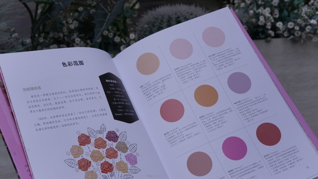 粉色是很多读者特别关注的一种颜色。在18世纪,人们热衷于用类似的非常形象又浪漫的称呼来描述服装的颜色。比如有一种介于灰色、褐色和粉色之间的颜色,人们称之为“跳蚤色”。既然有了“跳蚤色”,那自然而然地,紧跟着又出来了一系列变体:蚤腿色、蚤肚色、蚤背色……