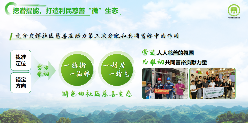 四是挖潜提能,打造利民慈善“微”生态。当前,番禺区社区慈善事业正在围绕以下三个方面深化推进:充分发挥社区慈善在助力第三次分配和共同富裕中的作用。社区慈善要在中国式现代化中找准定位、锚定方向,努力推动构建全区一镇街一品牌、一村居一特色的社区慈善生态,广泛凝聚群众力量,营造人人慈善的氛围,为推动共同富裕贡献力量。在“大慈善”时代用好数字化技术支撑。拓展社区慈善活动的新场景,构建开放高效的慈善生态聚合体系,提升社区慈善基金造血能力。番禺区将继续探索“慈善+消费”等新模式,让慈善融入日常生活。深化社区慈善的改革创新。坚持问题导向和改革思维,着力破除体制机制障碍,推动社区慈善事业高质量发展。番禺区将积极借鉴国内外先进经验,不断创新慈善工作模式和方法,为慈善事业发展注入新的活力。