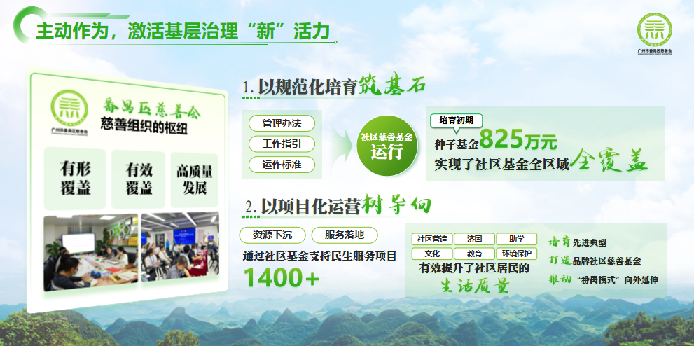 番禺区聚焦社区慈善,紧紧抓住社区慈善基金这个小切口,建机制、搭平台、造品牌、育队伍、传文化,全力书写社区慈善事业的番禺样本。