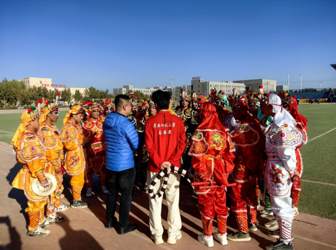 历经长达两个月的训练,二中英歌队雄姿英发,期待在舞台上大展身手。同时,华南师范大学援疆支教大学生也在紧锣密鼓筹备着英歌队演出的妆造、后勤工作。