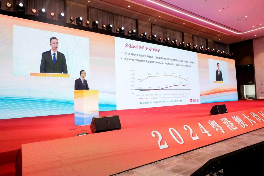 大会上,暨南大学产业经济研究院、广东粤港澳大湾区研究院、广东省粤港澳大湾区文化创意产业促进会联合发布了《2024年度粤港澳大湾区文化产业投资趋势报告》。报告指出,粤港澳大湾区文化产业投资优势突出,广东文化产业增加值连续20年位居全国第一,年均增速超过10%。2023年广东规模以上文化及相关产业企业实现营业收入22483亿元,全国第一。大湾区文化产业核心城市香港、澳门、广州、深圳文化资源丰富、优势互补,牵引形成广深港澳文化产业创新走廊。特别在文化科技牵引下,文化新业态引领增长新动能2023年广东人工智能核心产业规模1800亿元,五年时间内增长近六倍,全省新增人工智能相关注册企业近12.2万家,同比增长超33%。人工智能与数字技术是大湾区科技创新最活跃的领域,广东省新增授权发明专利行业分布TOP20绝大部分是人工智能与数字技术专利。而且大湾区工业门类齐全,珠江两岸制造业全产业链配套优势突出,数字文化智造增长潜力巨大。未来粤港澳大湾区文化产业投资热点将主要集中在AIGC、数字创意生产、文化“智”造、新型文化消费等方面。