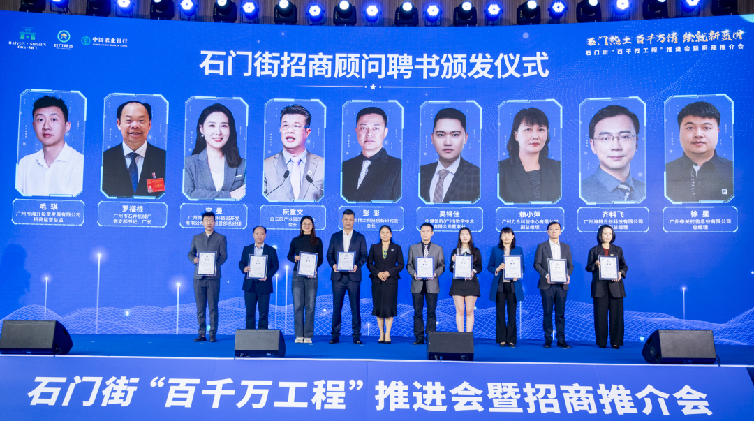 当日,大会向广州市博士科技创新研究会会长彭澎、中健领航(广州)数字技术有限公司董事长吴锡佳等行业专家、优秀企业家共9人颁发招商顾问聘书,这些优秀招商顾问将以其出色的专业度和知名度,持续助推石门街招商工作取得新成效。