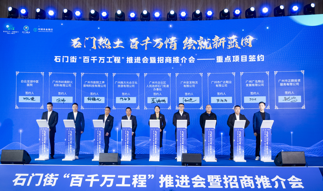 11月20日,广州市白云区石门街“百千万工程”推进会暨招商推介会在白云湖数字科技城举行。广州安发物流有限公司、广州南方光合文化旅游有限公司、广州市广达鞋业有限公司等15家优质企业与石门街签署合作协议,总投资额超100亿元,这些项目的落地将进一步提升石门街道数字产业集聚效应,助推壮大白云区新质生产力。