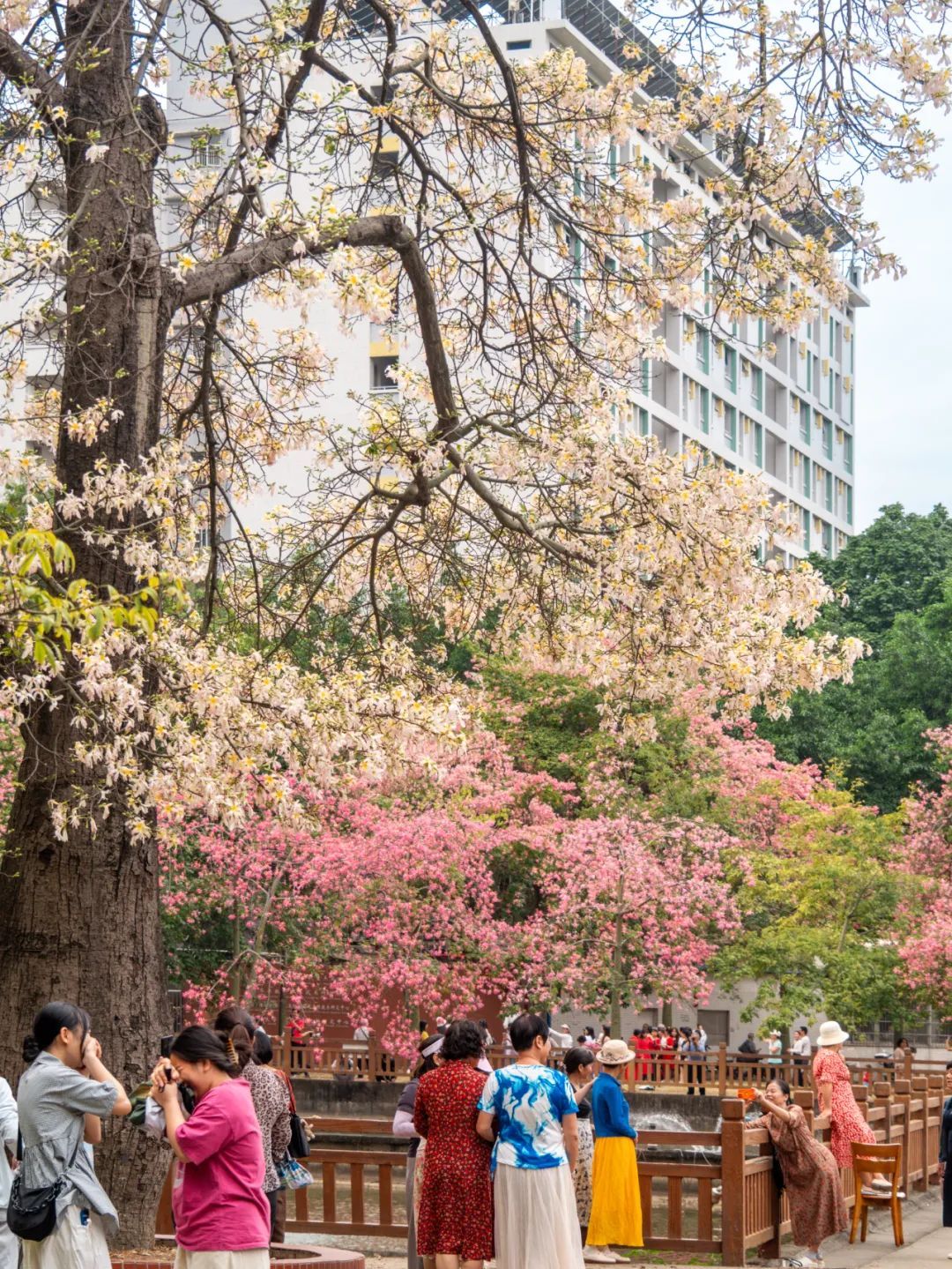 ▲华南师范大学石牌校区的美丽异木棉既有粉红色又有白色,满树繁花,近期成了“花城”广州一处知名美景。(摄影|刘宇)