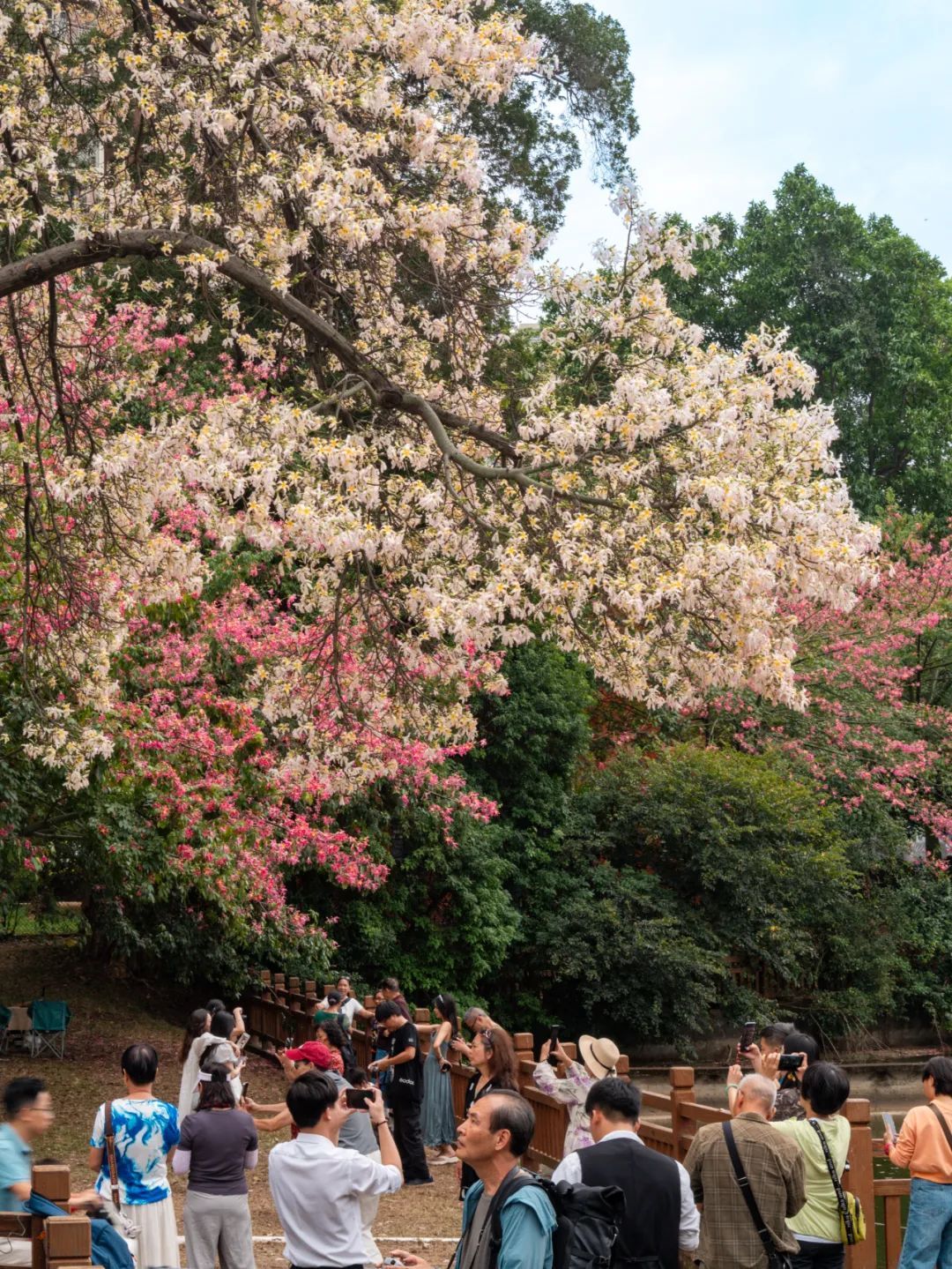 ▲花树下拍照的市民。(摄影|吴子良)