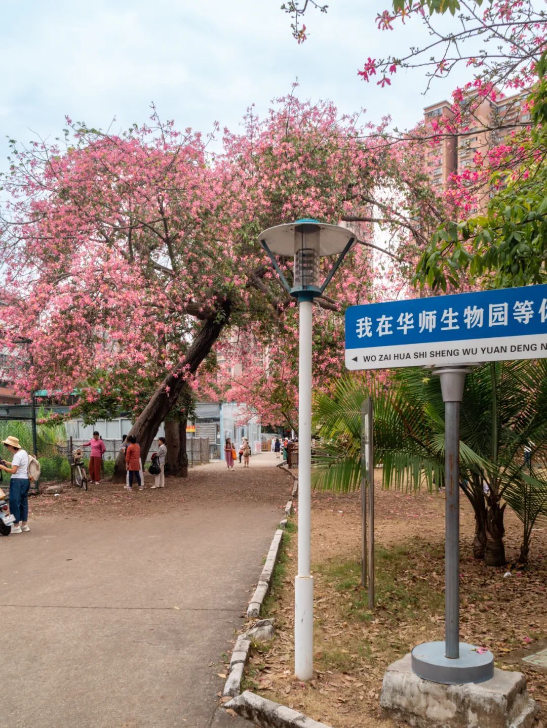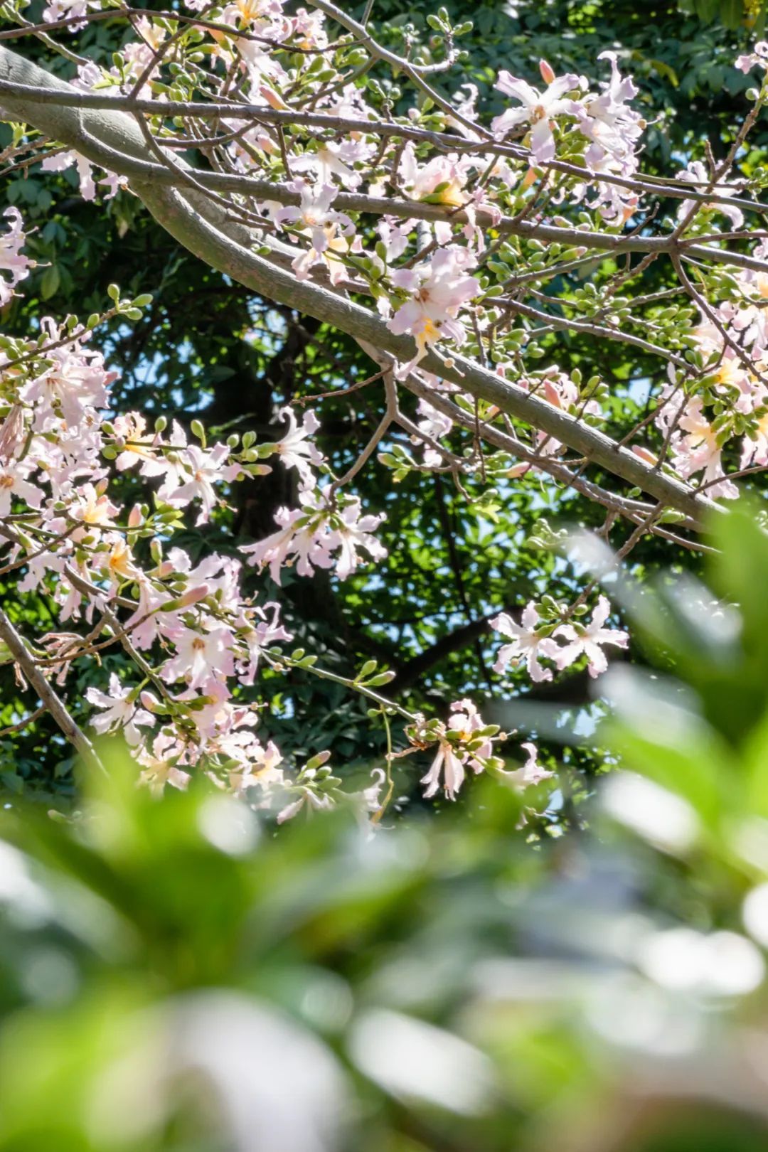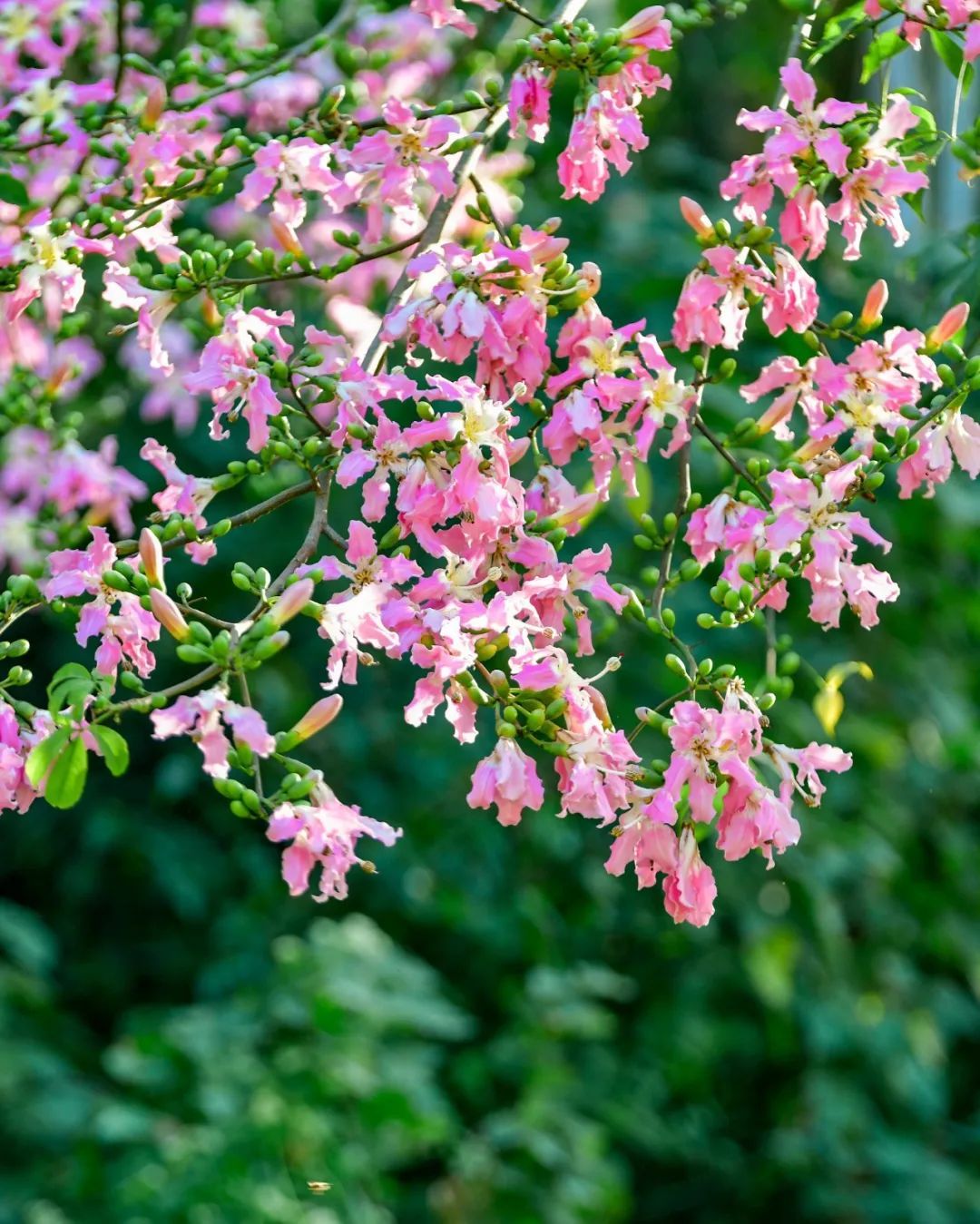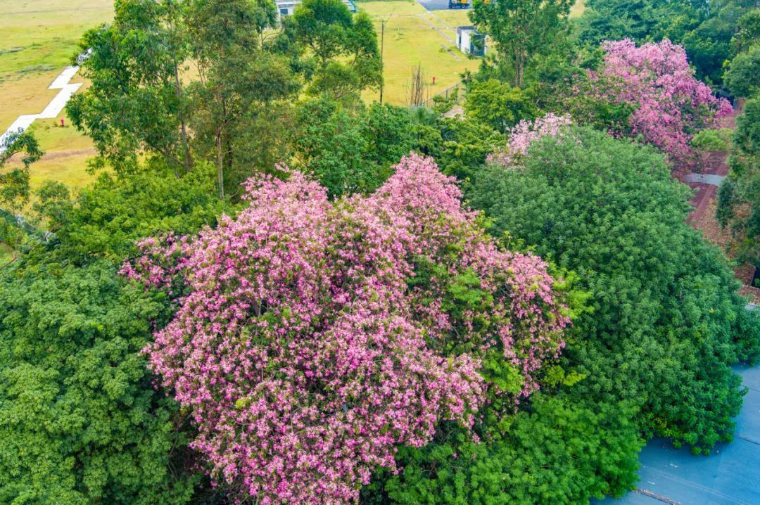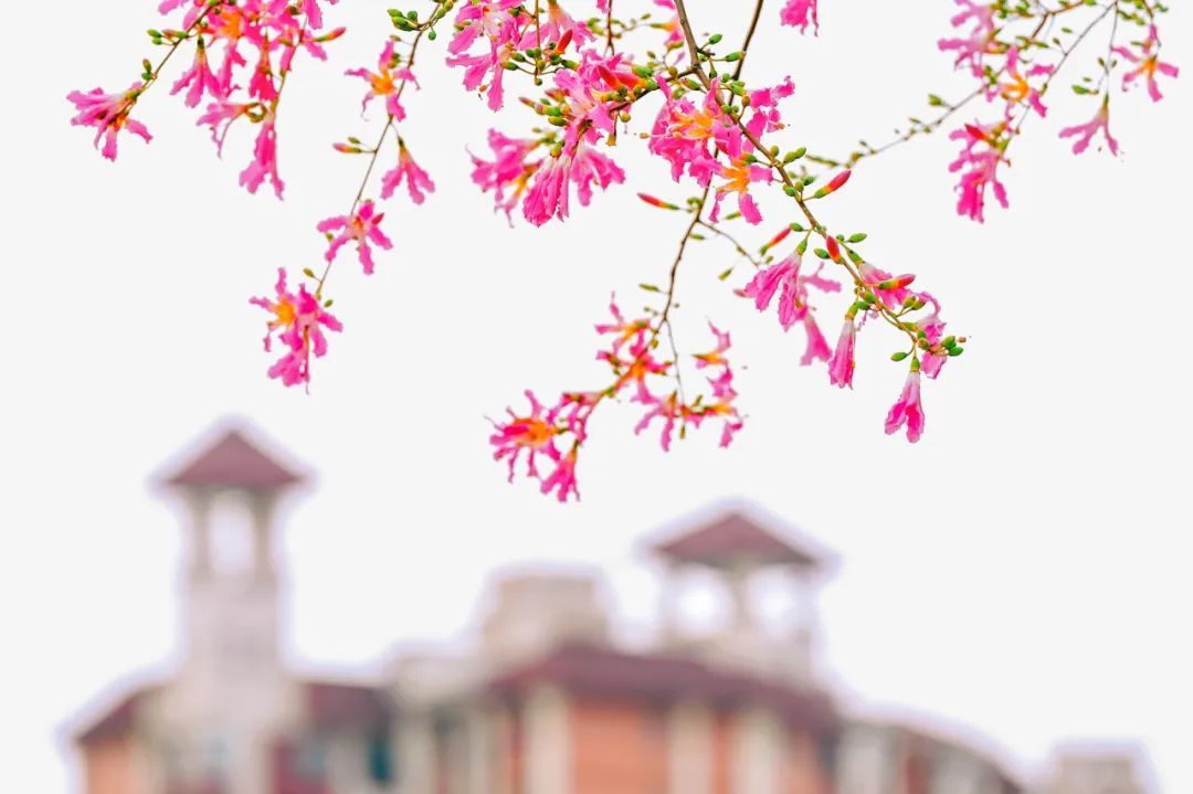 除了白色的美丽异木棉花,校园内还有很多处开粉色花的“美树”,等待你去慢慢欣赏。