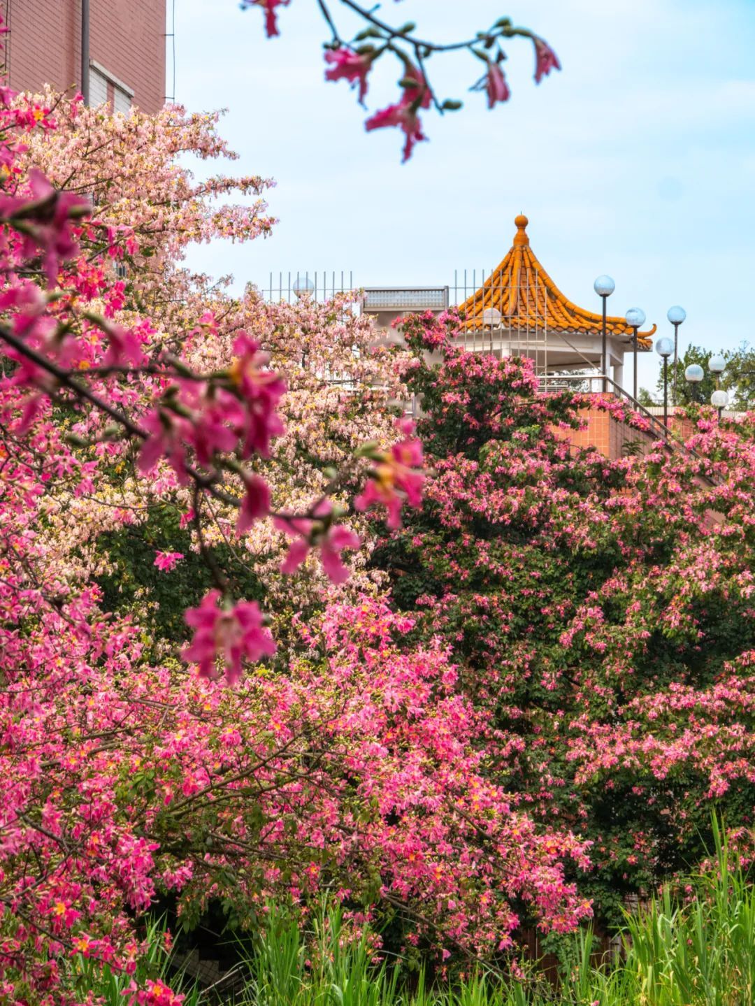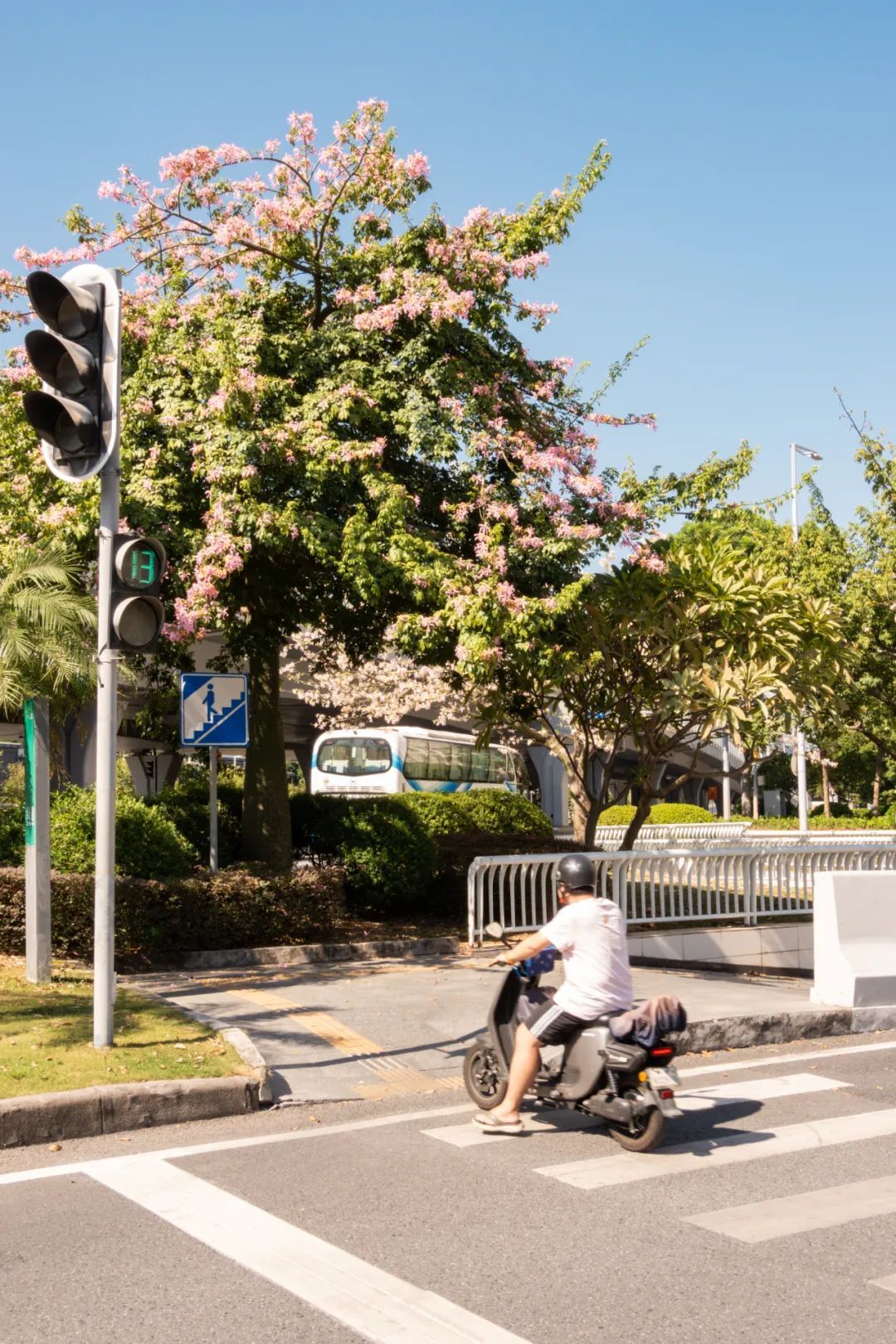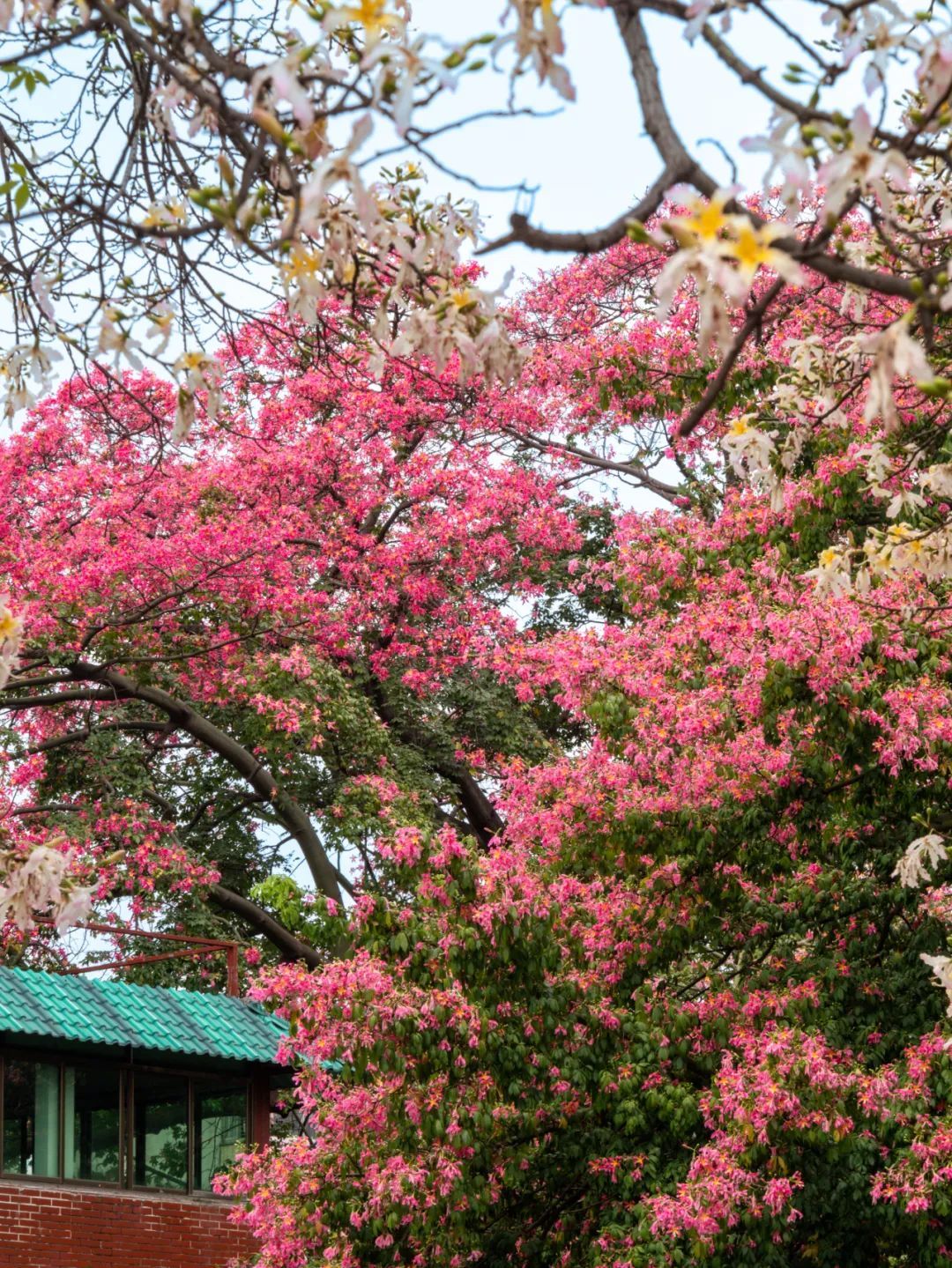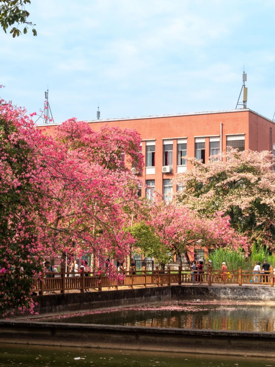 除了白色的美丽异木棉花,校园内还有很多处开粉色花的“美树”,等待你去慢慢欣赏。