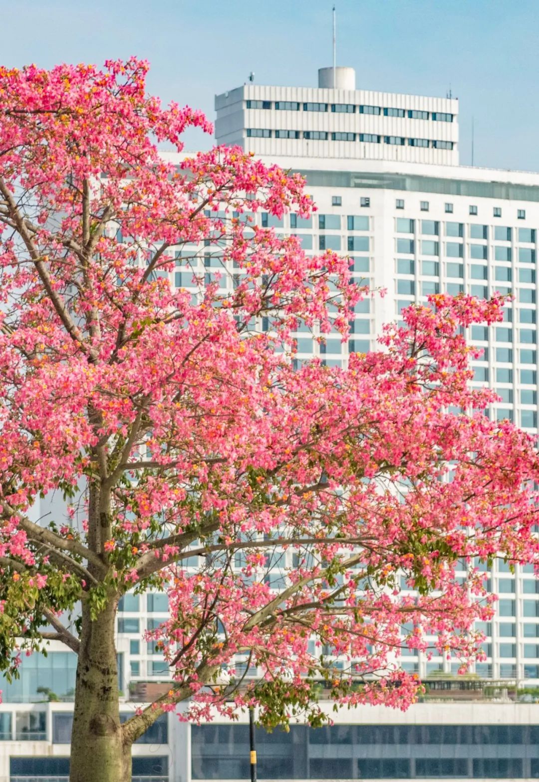 ▲美丽异木棉身后就是白天鹅宾馆。(摄影|廖雪明)