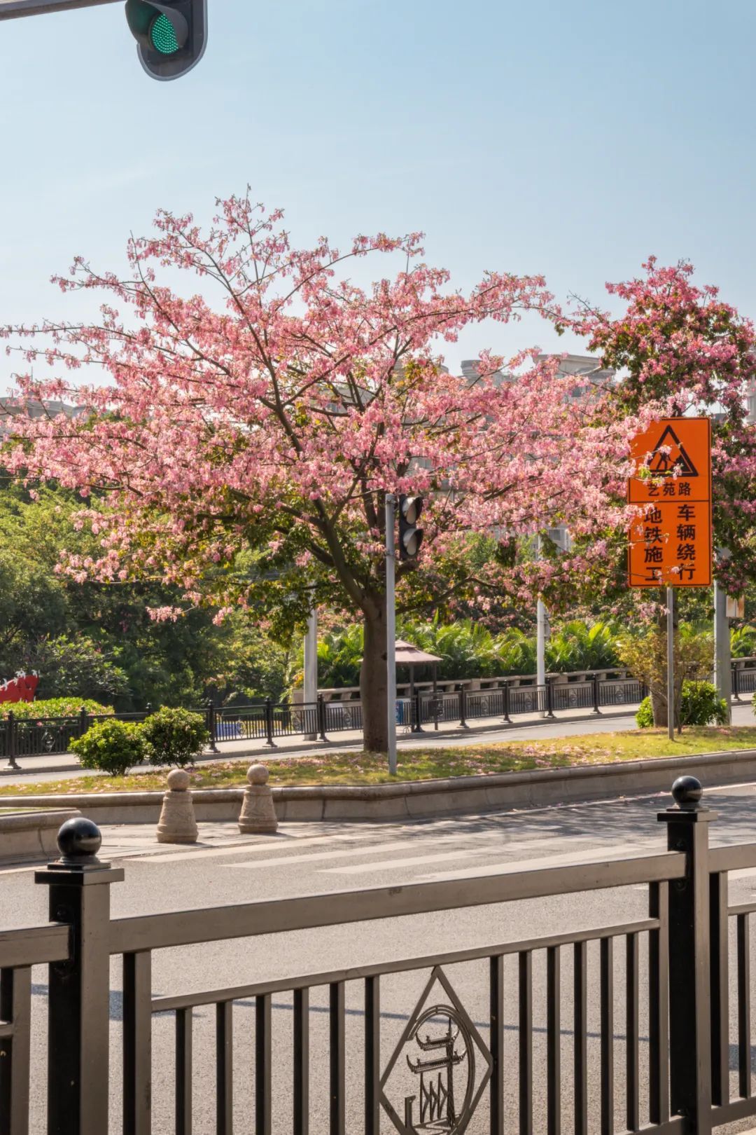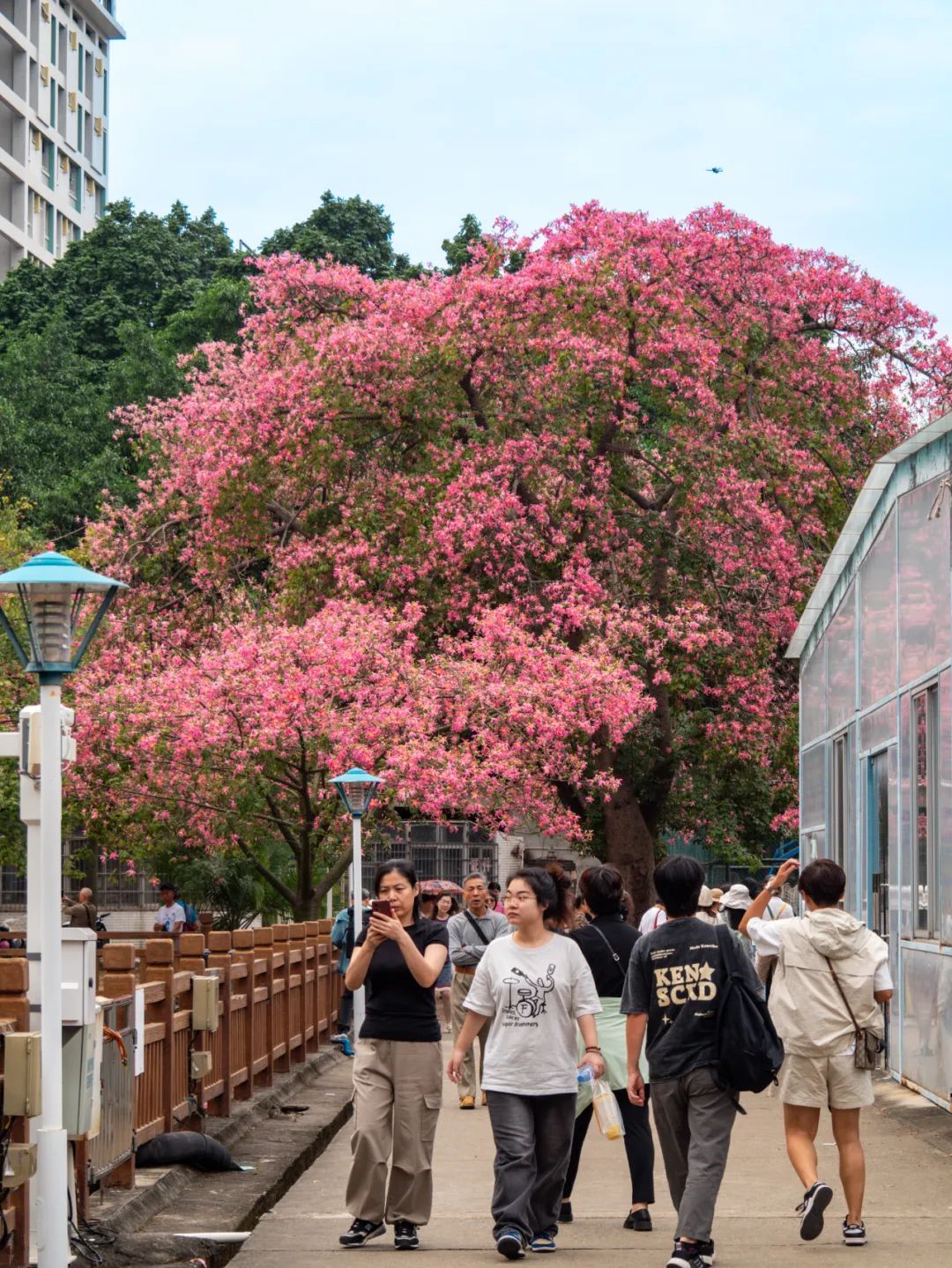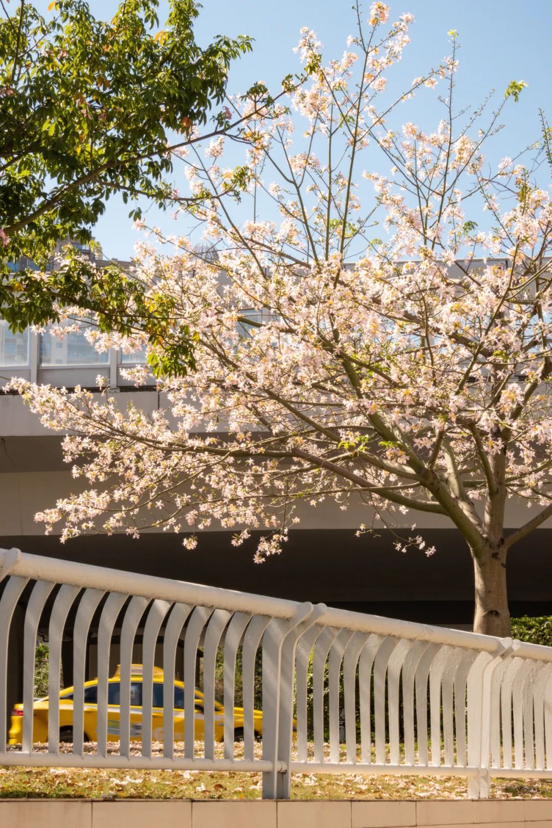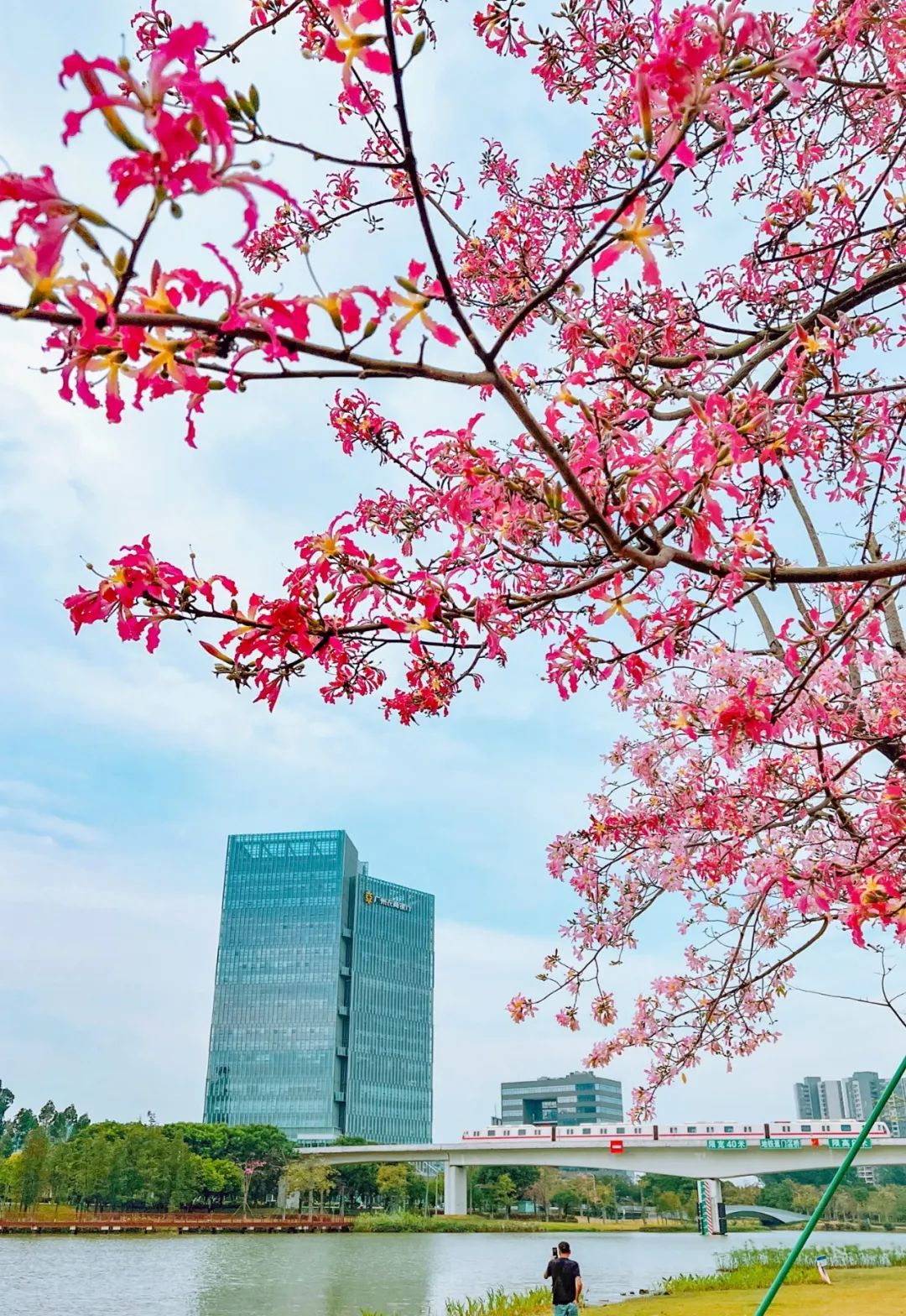 这棵美丽异木棉位于热闹的大湾区艺术中心附近,周围很开阔,非常适合观赏。