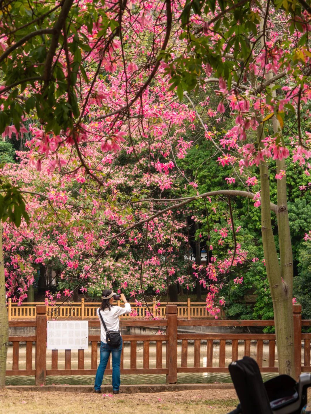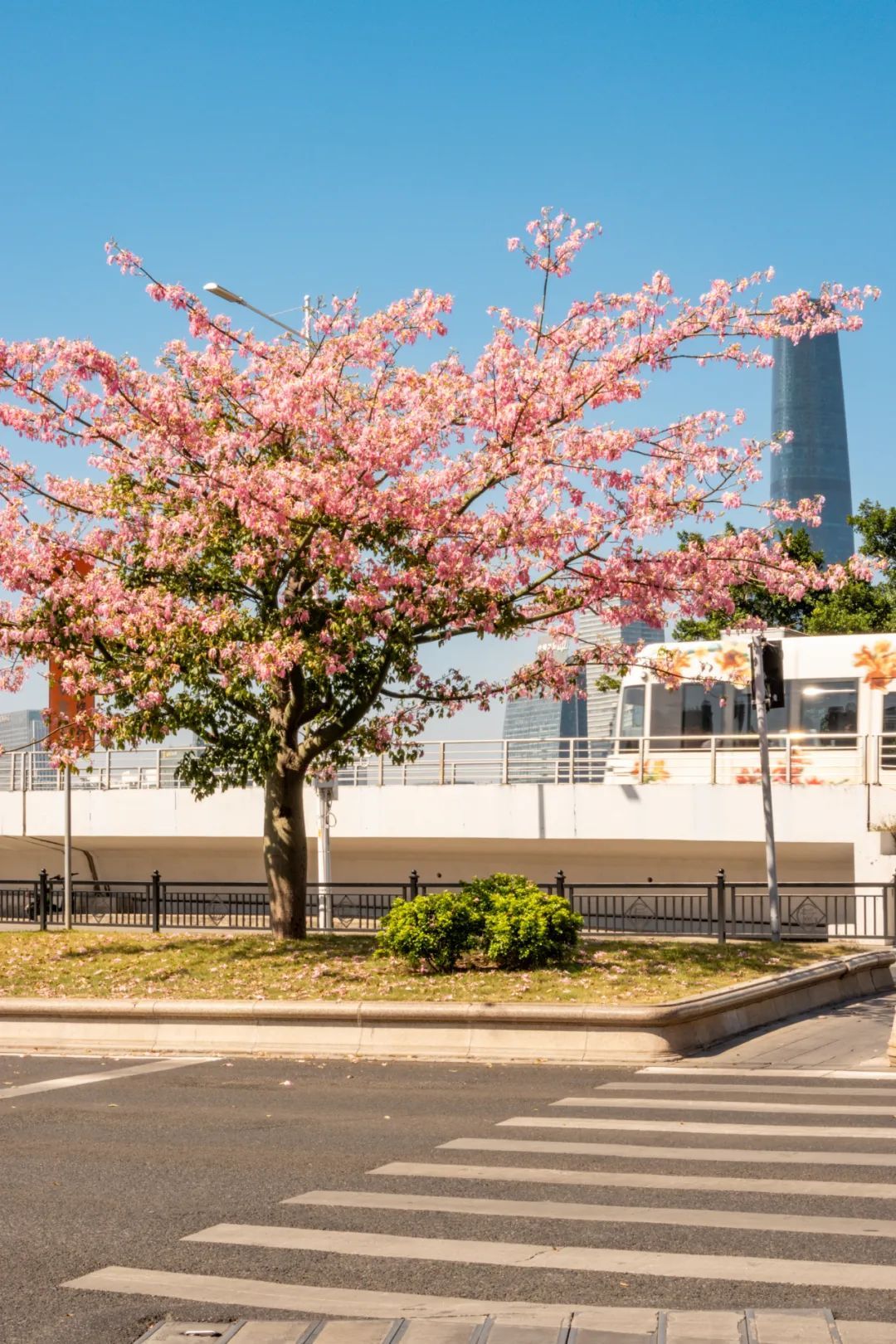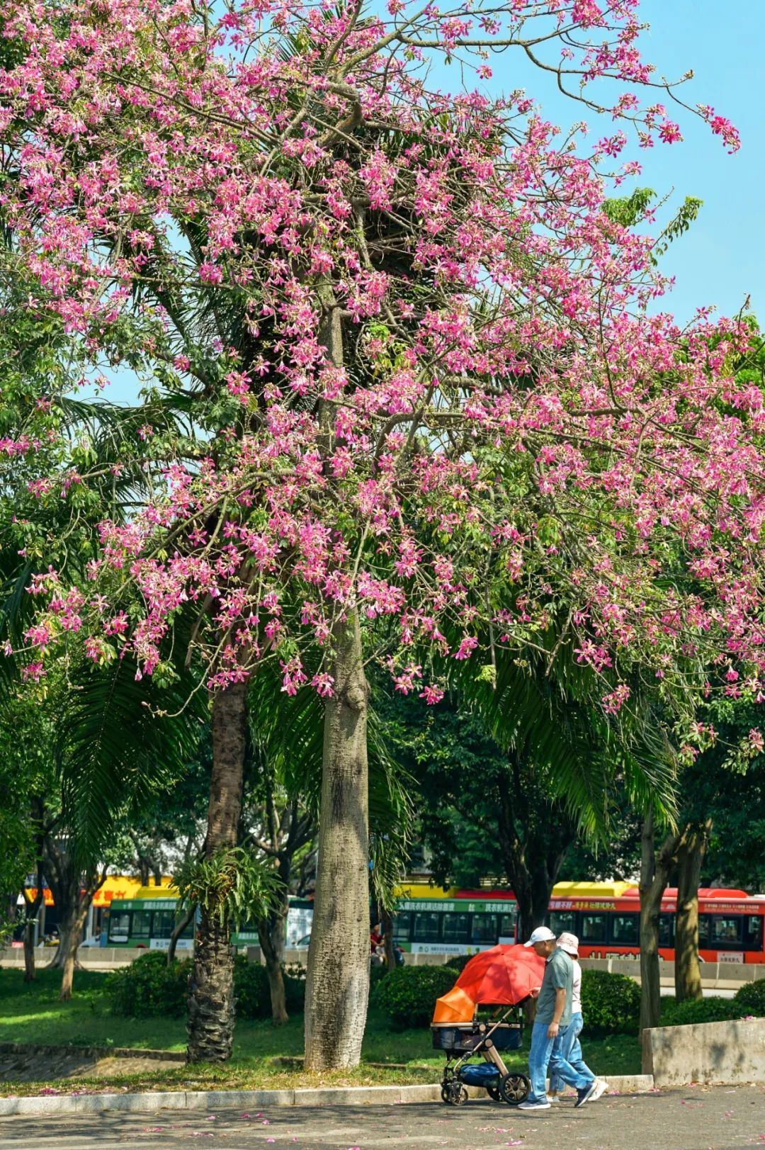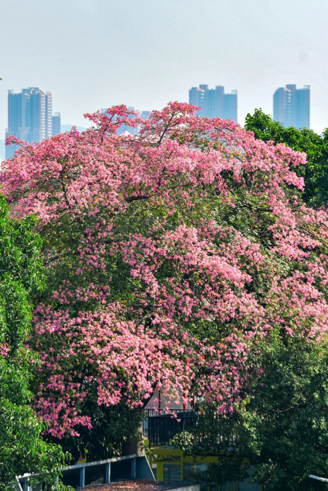 这棵美丽异木棉位于热闹的大湾区艺术中心附近,周围很开阔,非常适合观赏。