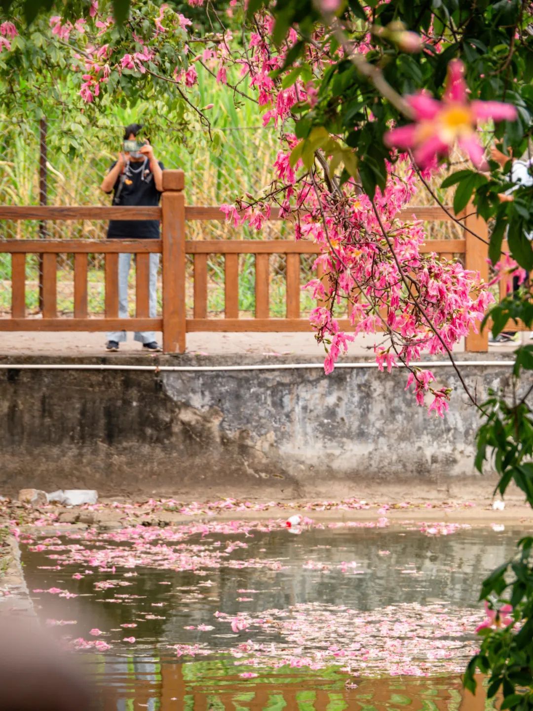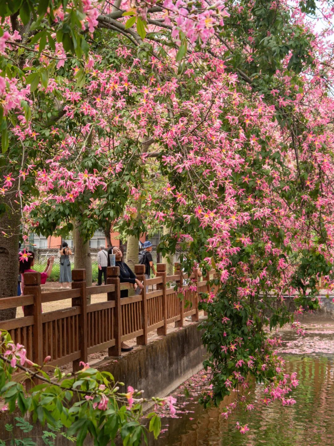 天河区深涌旁,往来市民不时被盛开的美丽异木棉花朵所吸引。(本组摄影|杨耀烨)