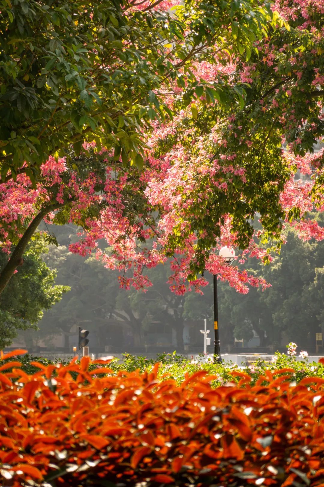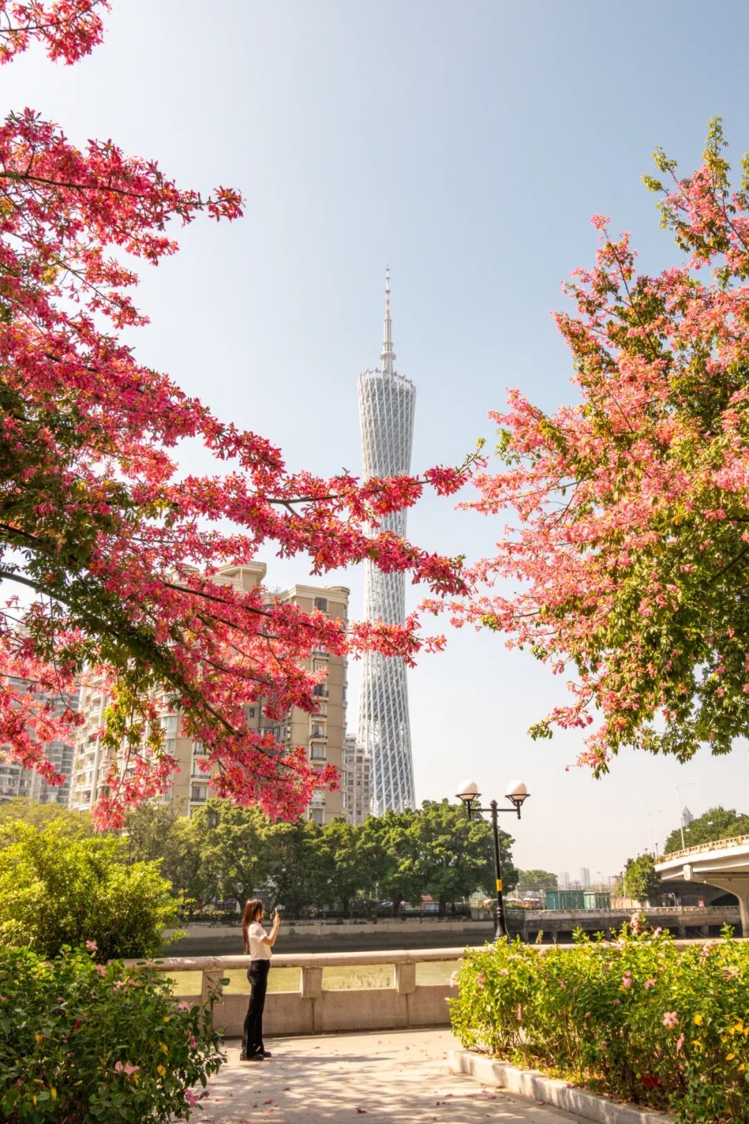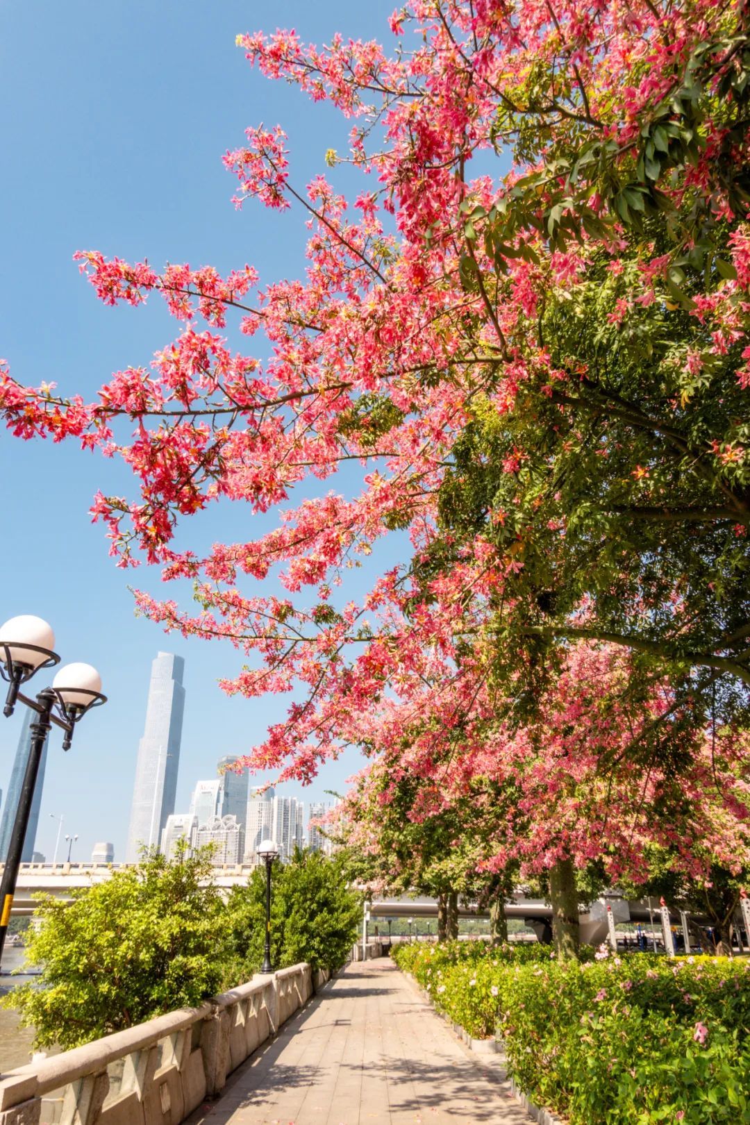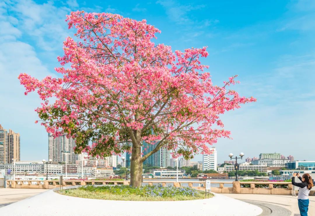 ▲ 鹅潭新韵,美丽异木棉让白鹅潭更添活力生机。(摄影|吴子良)