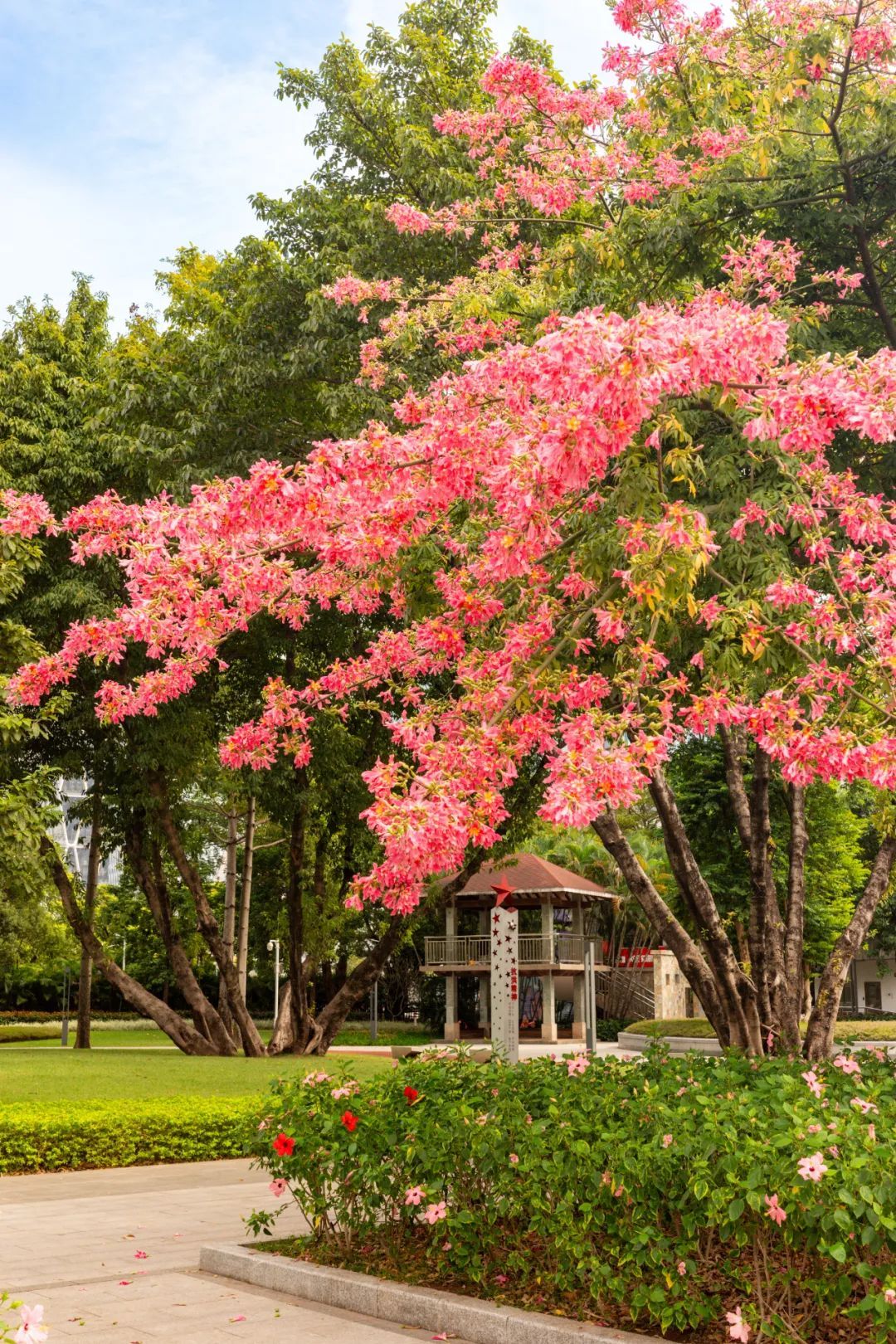 蕉门公园美丽异木棉花开正艳,分外娇娆。