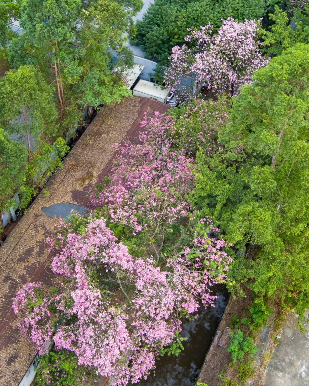 走到树下,如同进入浪漫的粉色花海。