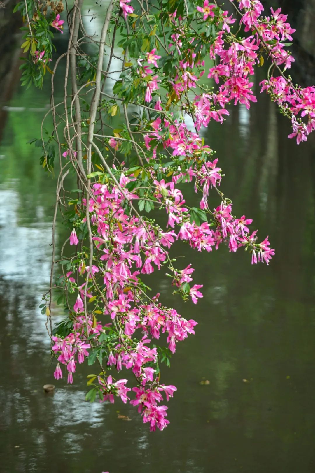 近期,荔湾区东西路的河涌旁,一排美丽异木棉悉数开花,绿植之中粉色花树尤为惹眼,令人怜爱。(本组摄影|杨耀烨)