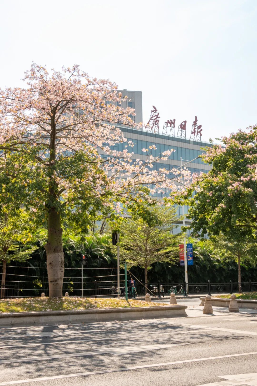 ▲海珠区磨碟沙路的淡粉色美丽异木棉非常清新唯美。(摄影|刘宇)
