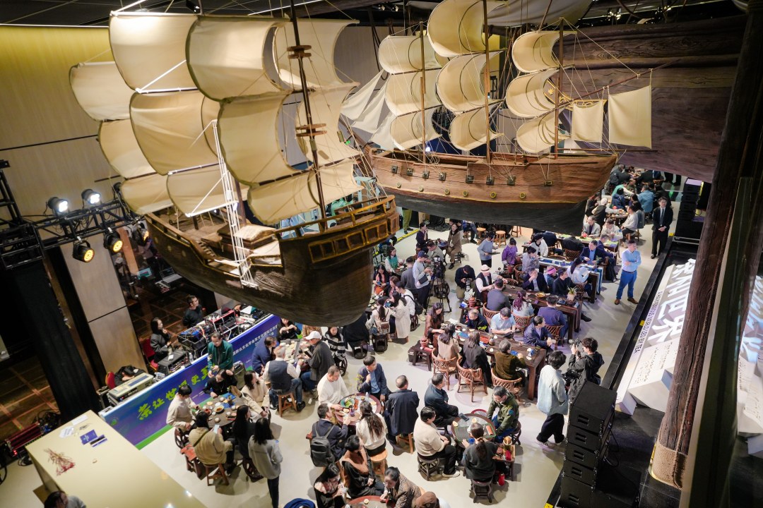 同日晚上,在广州市文化馆内,“中国影响力茶馆TOP100主理人茶会”氛围浓厚。主办方将多种文化空间场景巧妙融合,打造了一出文化馆里的百席茶事生活场景。近百位茶人设席于曲艺园,利用园中典雅多变的空间布局,再现曲水流觞的诗意。茶与人文自然的融合,带领茶友在沉浸式、情景化的环境中体验茶之美,茶之韵。