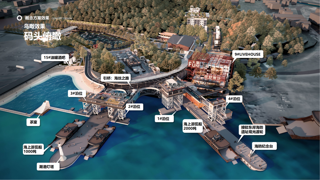 项目计划打造南沙首个“创意码头+文创园区+文化演艺”三位一体的综合性项目,聚集餐饮、住宿、体验等业态,以海防文化为底色、旧厂焕新为成色、演艺活动为亮色,为粤港澳大湾区青少年提供海防文化旅游驻泊地,提升南沙湾片区文旅消费体验感。
