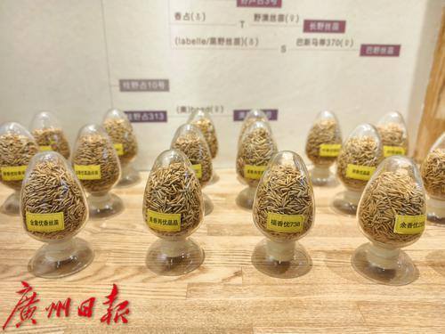 增城丝苗米产业文化展示馆展示的丝苗米产品。