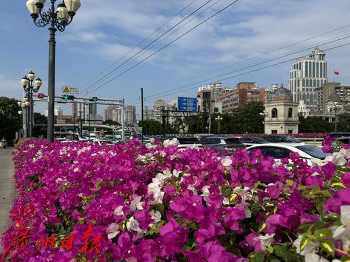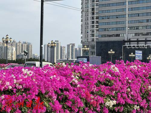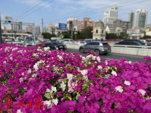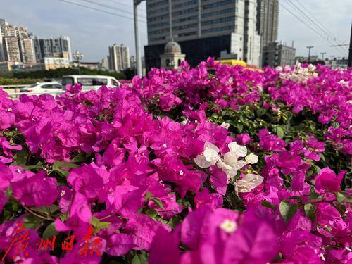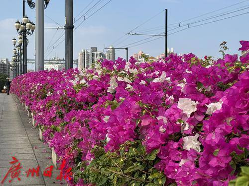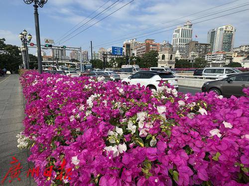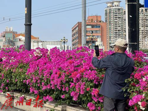 11月21日,广州人民桥,簕杜鹃花盛开,吸引市民拍摄“打卡”。