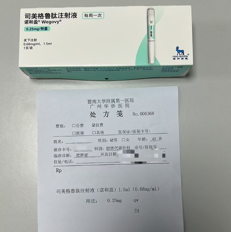 11月17日,诺和盈宣布在国内上市。11月18日早上,密切关注“减肥针”动态的李先生走进暨南大学附属第一医院副院长、胃肠外科肥胖代谢外科主任医师杨景哥诊室,咨询是否可以开打“减重版”司美格鲁肽。经过一系列检查,查明李先生体重96公斤、BMI指数33,还伴有高血压、高尿酸,符合用药适应证,医生为其开具了5个月的“减重版”司美格鲁肽用药处方。