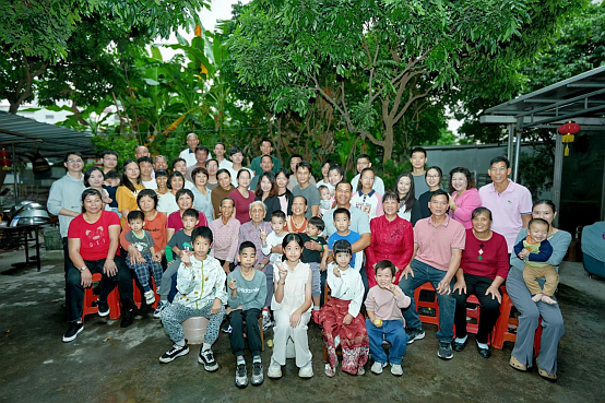 在全家福合影拍摄过程中,何婆婆家五代亲属共60多位齐聚一堂。漫长岁月,经历人生沧桑变化,而今五代人团聚,大家内心拥有的共同感受就是,庆幸身逢盛世方能五代同堂。
