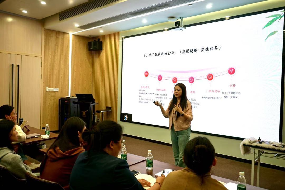 当被问到下了班还要去上课会不会累时?罗女士说,累是肯定的,但老师讲得好就值得。在课堂上,老师会有针对性地讲解不同肤质的护肤、化妆知识,还会邀请学员上台示范化妆手法。整个课程下来,罗女士因为加班,缺过一节课,不过学了三节课她觉得收获不少,掌握了很多化妆的技巧。
