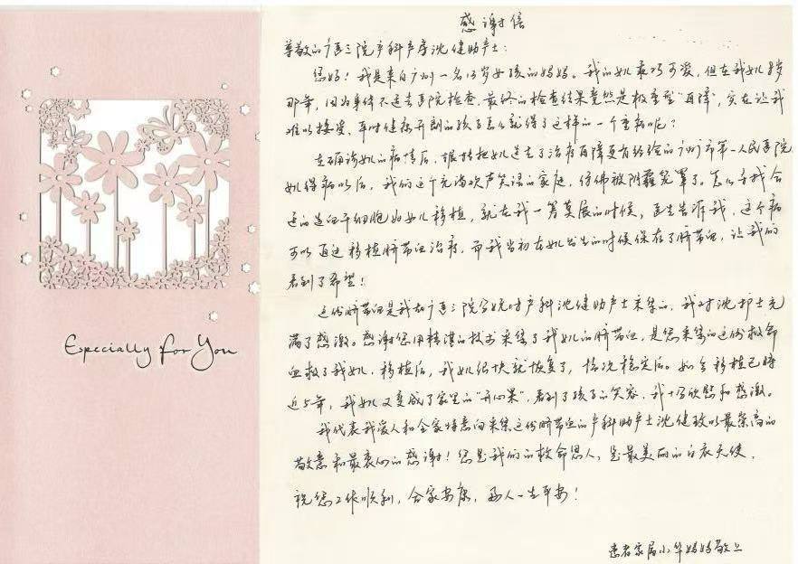 为了表达内心深处那份无尽的感激之情,小华妈妈特别定制了一面锦旗,还饱含深情地写下了一封充满诚挚感恩之意的感谢信。