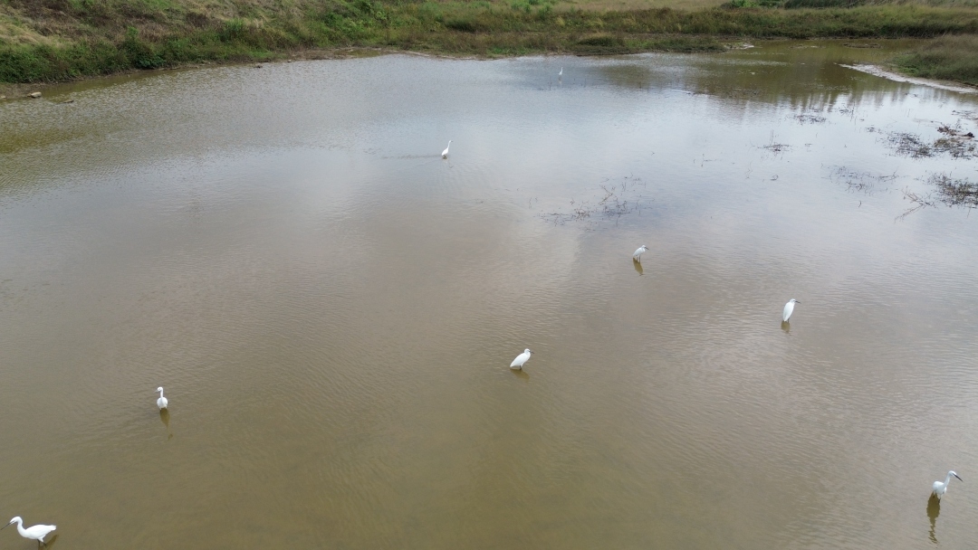在稻田另一侧,便是一高高的河堤,从上面可以看到成片的湿地和沼泽地,那里繁花似锦,各种鸟儿在枝头欢快地歌唱,成群的白鹭在浅水区觅食,构成一幅和谐的生态自然景观,这样的视觉享受,在城市周边也是不多的“奢侈”。