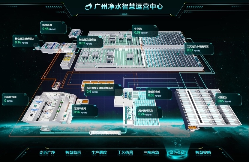 沥滘净水厂积极拥抱数字化、智能化转型,通过工艺智能化调控、碳排放实时监控等措施,有效推动节能降耗、提质增效与减污降碳。鼓风机电耗、除磷剂及消毒剂药耗均显著降低,三期碳减排比例优化至24%,实现碳减排量约8000吨/年,为实现“双碳”目标贡献力量。