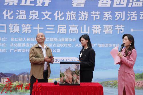 11月22日,2024年从化温泉文化旅游节系列活动之助力环南昆山—罗浮山县镇村高质量发展引领区建设——良口镇第十三届高山番薯节在良口镇人大广场开幕,以“丰”景正好,“薯”香四溢为主题,讲好良口故事,助力良口旅游经济高质量发展。